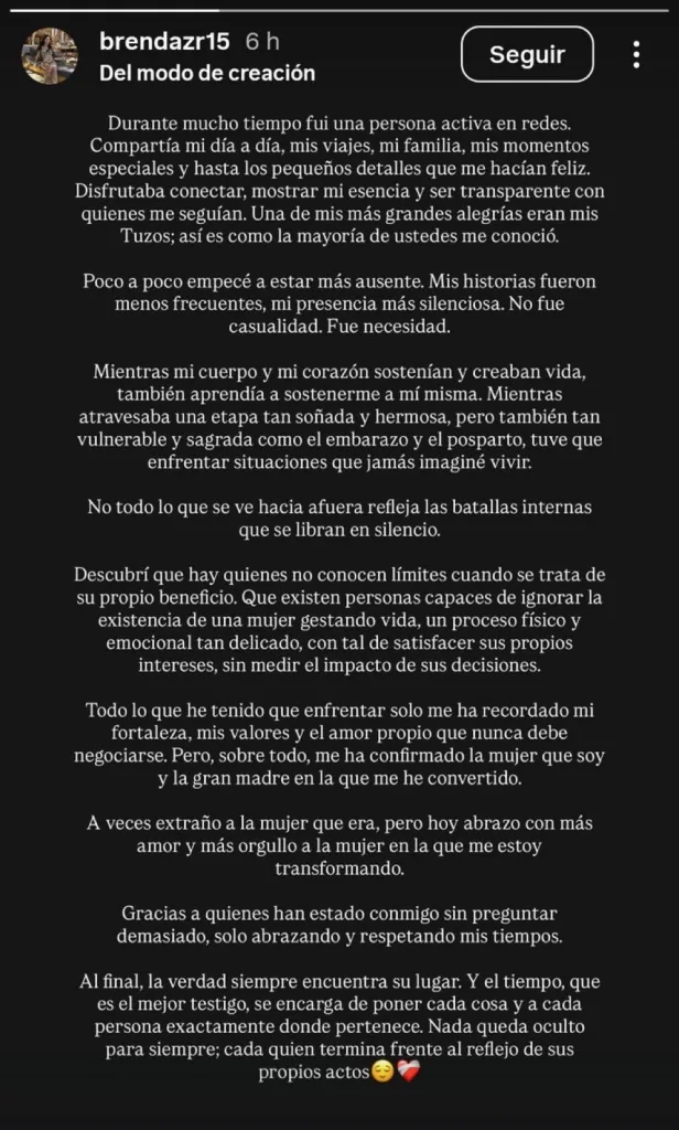 El mensaje de Brenda Zúñiga llamó la atención de sus seguidores, donde expone una serie de problemas que debió afrontar en los últimos meses durante su embarazo. Con indirectas para el guardameta, este fue su curioso mensaje.