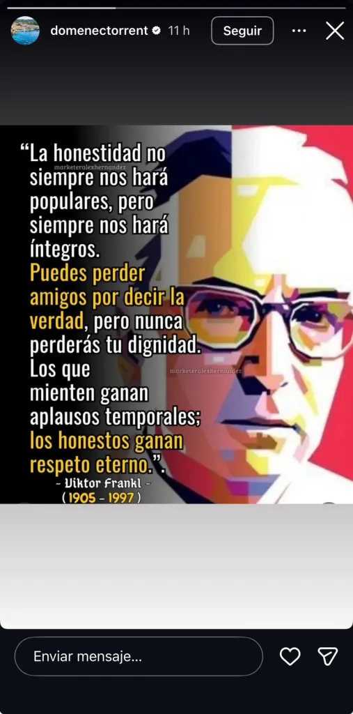El estratega publicó en sus historias de Instagram una frase atribuida a Victor Frankl en la que habla de la honestidad. Y en donde reflexiona sobre cómo este valor puede costar amistades, pero no la dignidad.