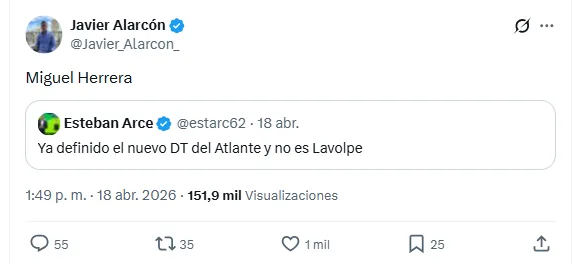 La información no quedó únicamente en ese señalamiento. Minutos después, Javier Alarcón, comentarista de ESPN, aseguró que Miguel Herrera sería el siguiente entrenador del Atlante. Aunque no se dieron más detalles al respecto, todo apunta a que solo sería cuestión de tiempo para que la directiva del club haga el anuncio oficial.