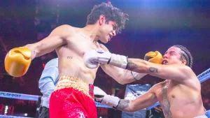 Desde el inicio, Aaron Mercury mostró una intensidad que pareció tomar por sorpresa a Mario Bautista. Antes de que terminara el primer asalto, el creador de contenido conectó una combinación quirúrgica que impactó de lleno en el rostro del cantante.