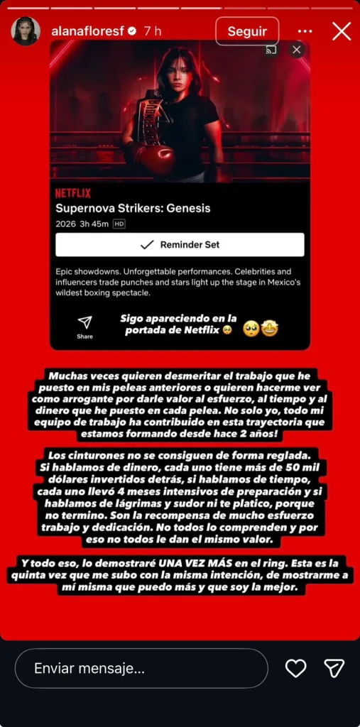 Tras confirmar su presencia en Supernova Strikers Génesis 2026, Alana Flores lanzó un fuerte mensaje en redes sociales. En él, estalló contra quienes minimizan su trabajo arriba del ring y, de paso, envió una advertencia rumbo a su próxima pelea.
