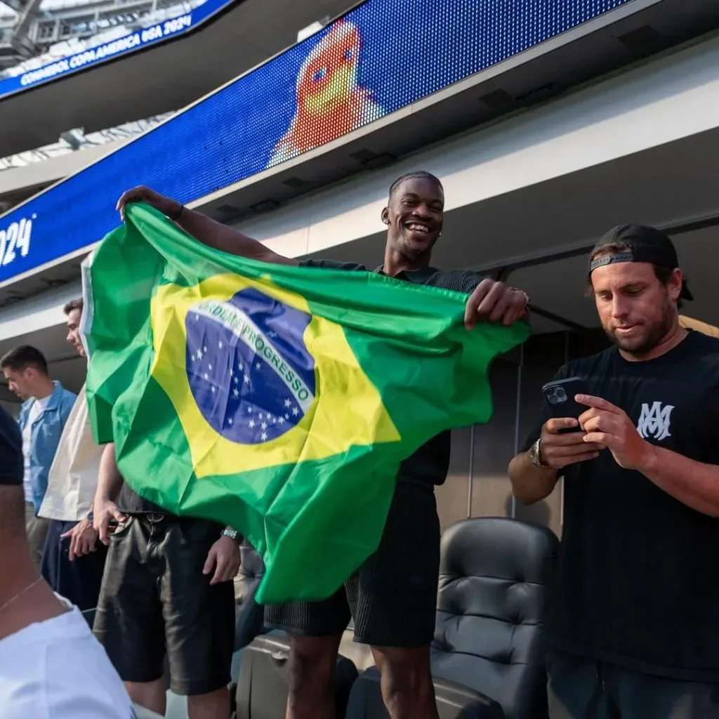 Es que, más allá de sus reacciones virales a lo que pasaba en el campo de juego, sus amigos compartieron imágenes con Jimmy Butler, estrella de los Chicago Bulls de la NBA.