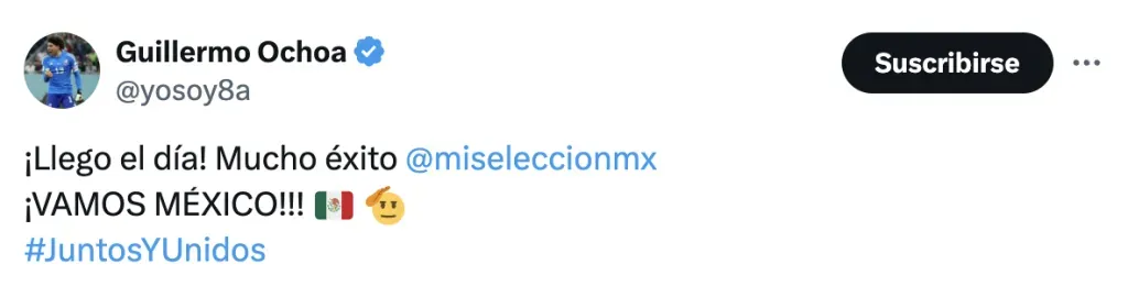 “¡Llegó el día, mucho éxito! ¡VAMOS MÉXICO! Juntos y unidos”