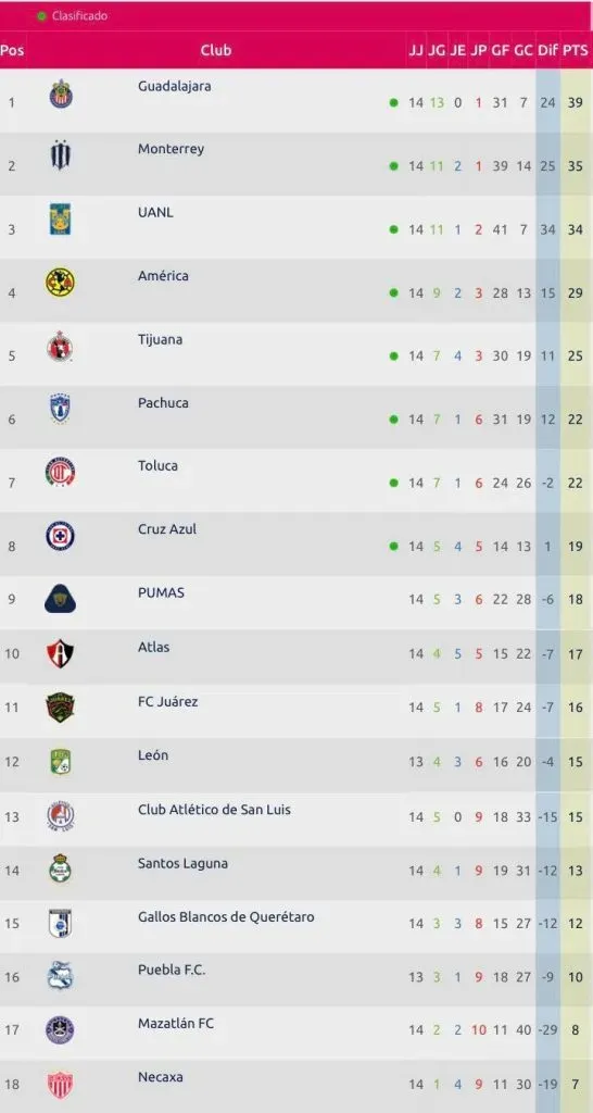 También es importante recordar que en la Liga MX Femenil, aún no existe el repechaje y se mantiene el formato antiguo de Liguilla, instancia a la que entran los mejores 8 equipos posicionados en la tabla general.