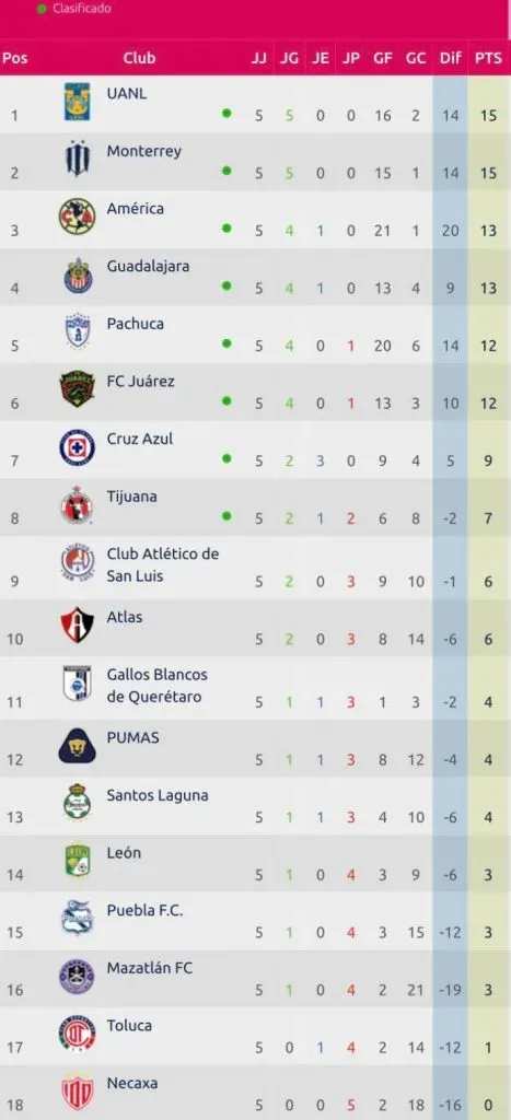 Con este resultado, las Tuzas se convierten en la segunda mejor ofensiva tras cinco jornadas disputadas, al llegar a 20 goles marcados, solo uno menos que el América.