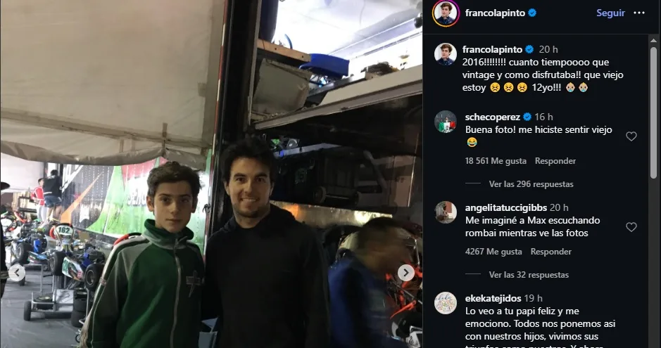 Aquella fotografía se dio cuando Franco Colapinto soñaba con, en un futuro, convertirse en piloto de Fórmula 1, y Checo Pérez era uno de sus ídolos. Por ello, la imagen revivió la nostalgia de golpe y el mexicano no tardó en reaccionar.