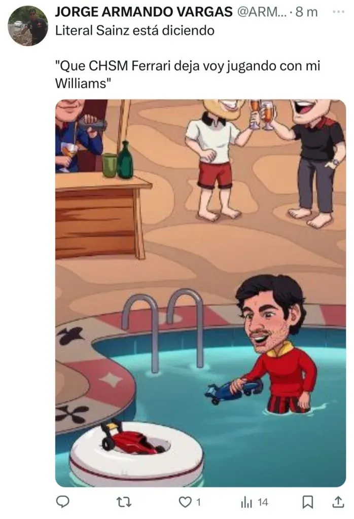 Un poco pasado de copas, junto a un barril, que es muy representativo de la serie de televisión, de el Chavo del 8. Finalmente, se puede ver en la imagen de Esteban Ocon chocando dos minis monoplazas, para variar. Lo que sin duda notaron los seguidores del Deporte Motor que tomaron esto como una manera de jugar con el tema.