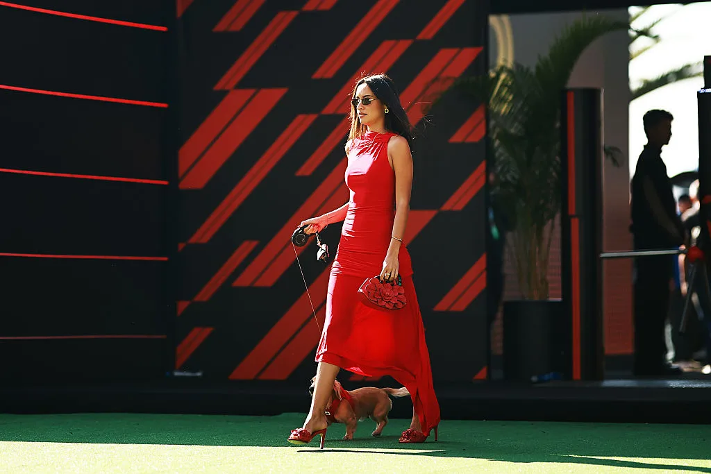 Unas gafas oscuras y el pelo suelto coronaron su look. Mientras que en la mano derecha sostenía la correa de Leo, que caminaba unos metros delante de ella. Listos ambos para ver a Charles Leclerc sobre la pista del Autódromo Hermanos Rodríguez en el Gran Premio de México.