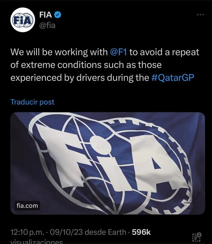 “La FIA observa con preocupación que la temperatura y la humedad extremas durante el Gran Premio de Qatar tuvieron un impacto en el bienestar de los pilotos”.