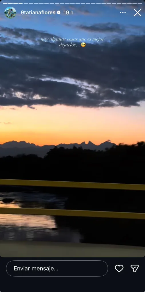 Tatiana Flores compartió un breve video en sus historias de Instagram. En él se observa que va a bordo de un automóvil mientras graba el paisaje de un atardecer y al fondo se ve el Cerro de la Silla, emblema de Monterrey.