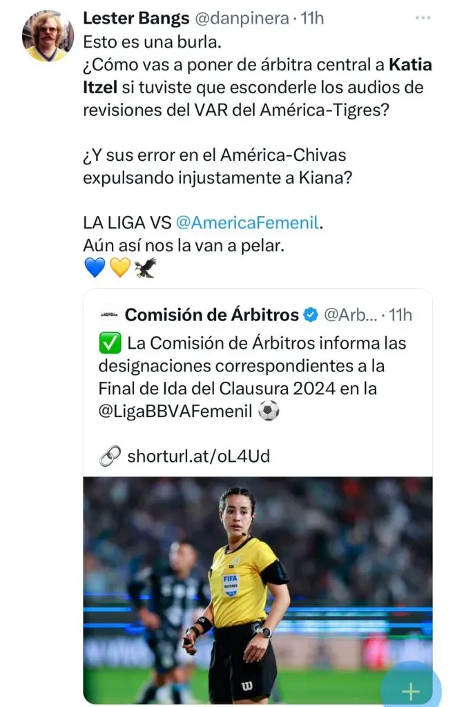 Es por esta razón que la Comisión de Arbitraje dio a conocer los nombres de los colegiados que estarán a cargo de las acciones en el terreno de juego, destacando el nombre de Katia Itzel García como la silbante principal. Cuestión que parece que a la mayoría de los aficionados no fue de su agrado, pues de inmediato reaccionaron en redes sociales.