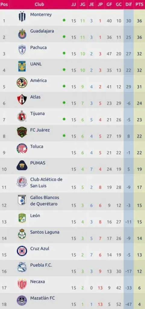 Los tres puntos que perdió el conjunto de Coapa lo llevaron a descender posiciones; sin embargo, nada que afecte su clasificación a la Liguilla, pues ya la aseguró desde la fecha anterior.