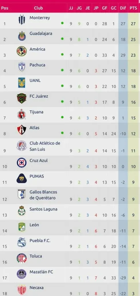Los equipos que siguen sin levantar con Pumas y Cruz Azul, pues han vivido un inestable torneo y así lo demostraron una vez más en la novena fecha.