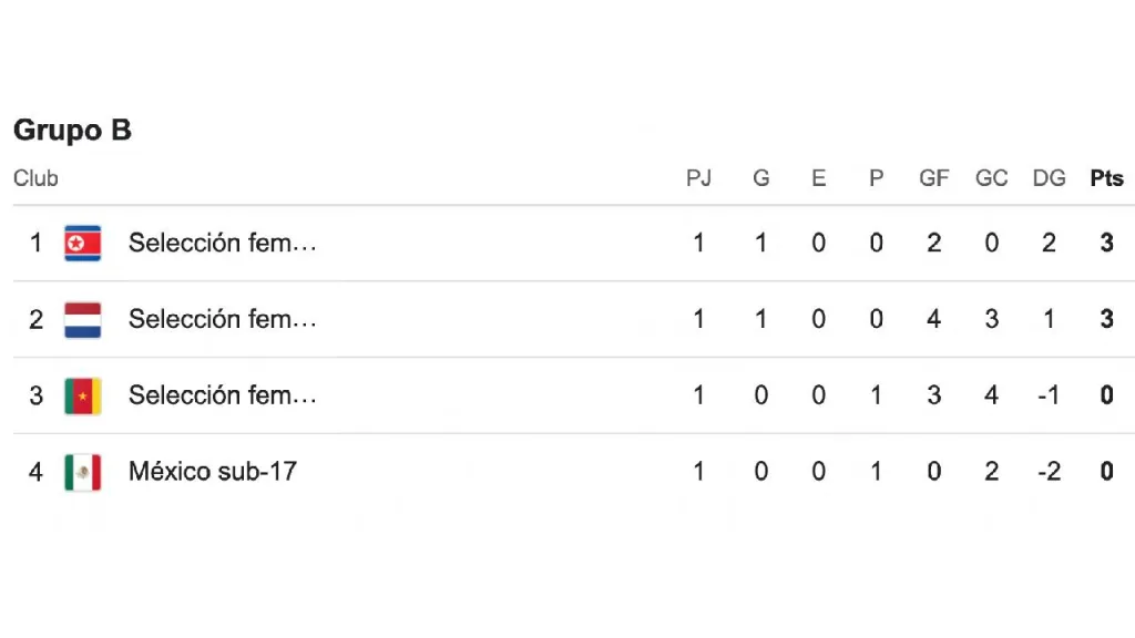 El cuadro azteca es parte del grupo B, junto a Corea del Norte, Camerún y Países Bajos, por lo que con esta derrota las manda hasta el último lugar de su grupo, ocupando el cuarto peldaño.