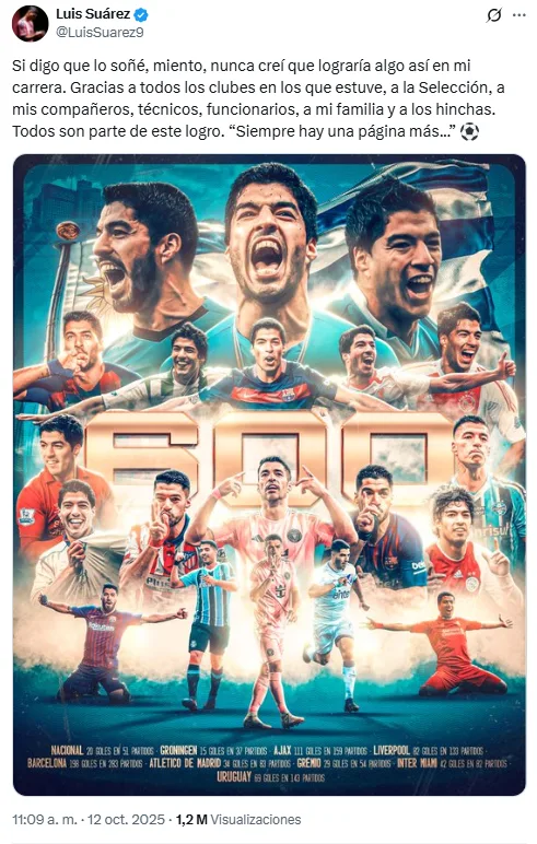 En el partido de Inter contra Atlanta United, el ‘Pistolero’ alcanzó la impresionante cifra de 600 goles en su carrera. El atacante charrúa hizo un posteo en redes sociales que ha dado mucho de qué hablar. “Si digo que lo soñé, miento, nunca creí que lograría algo así en mi carrera. Gracias a todos los clubes en los que estuve, a la Selección, a mis compañeros, técnicos, funcionarios, a mi familia y a los hinchas. Todos son parte de este logro. ‘Siempre hay una página más…’“.