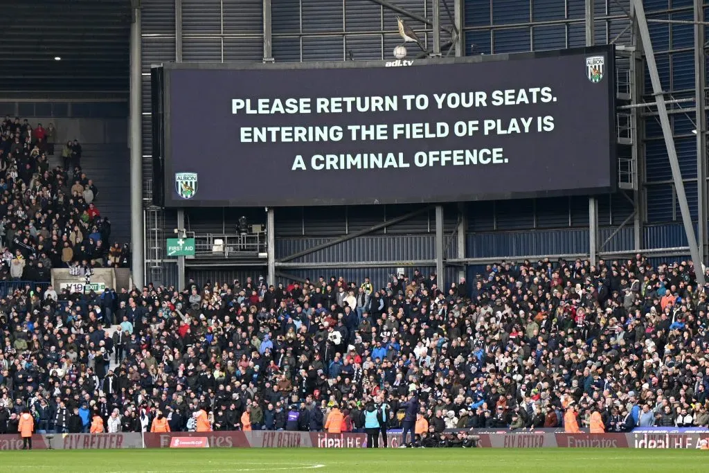 A falta de 10 minutos para el cierre del partido, Matheus Cunha puso el 2-0 y se desató el conflicto. Ante la inminente derrota, los aficionados del West Brom invadieron el campo de juego y en las gradas comenzó una batalla campal.