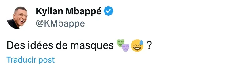 Kylian Mbappé calmó todo el panorama luego de su mensaje en redes sociales, el cual terminó siendo insólito, pues pidió a sus millones de seguidores que le dieran ideas de máscaras, pues al parecer tendrá que usar una de ellas para seguir jugando, ya que sí presenta una fractura.