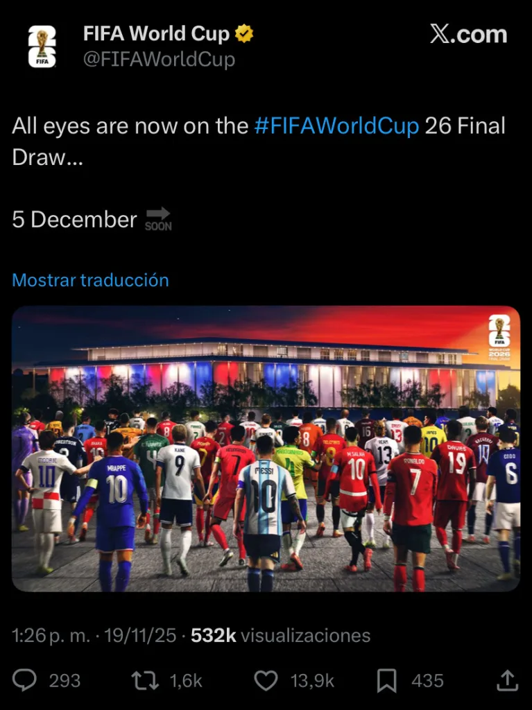 En la previa al sorteo del Repechaje al Mundial 2026, la FIFA ha utilizado sus redes sociales para publicar un póster oficial, en el que muestra a las 42 ya están clasificadas al torneo. De cada país, aparece un jugador representativo, pero no figura Cristiano Ronaldo.
