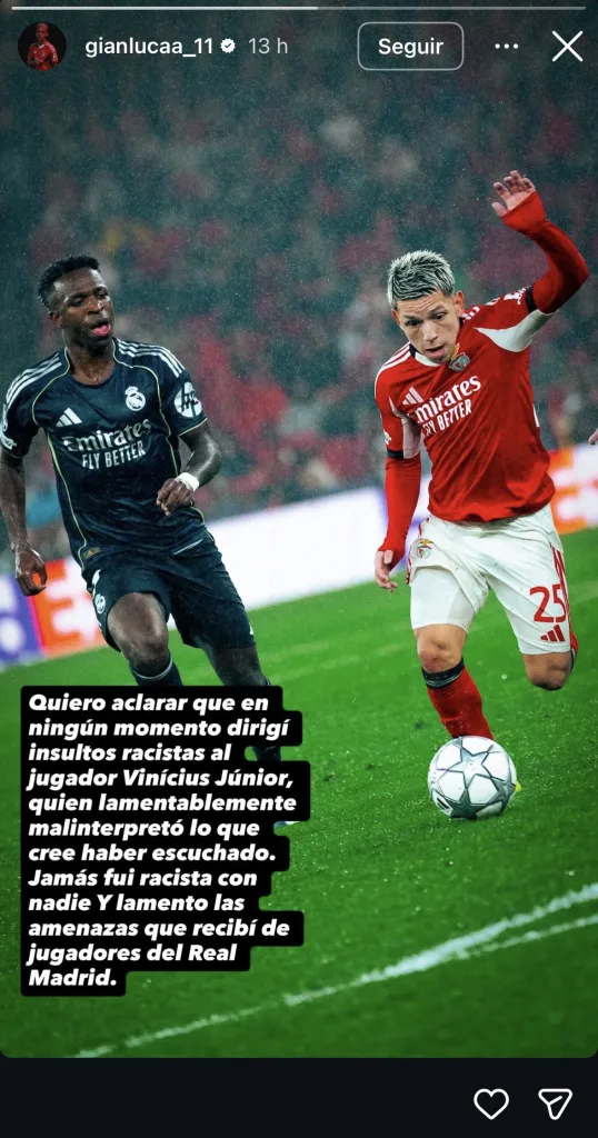 En medio de la polémica que se ha generado, Gianluca Prestianni rompió el silencio y reveló su verdad mediante sus redes sociales.