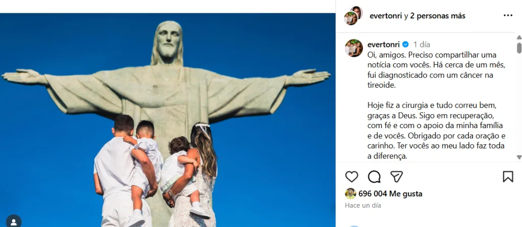 El futbol brasileño ha quedado helado con el último posteo en redes sociales del jugador, Everton Ribeiro. El futbolista de 36 años reveló que tuvo que pasar por el quirófano para tratar un cáncer de tiroides, asegurando también que el tratamiento fue completado exitosamente.