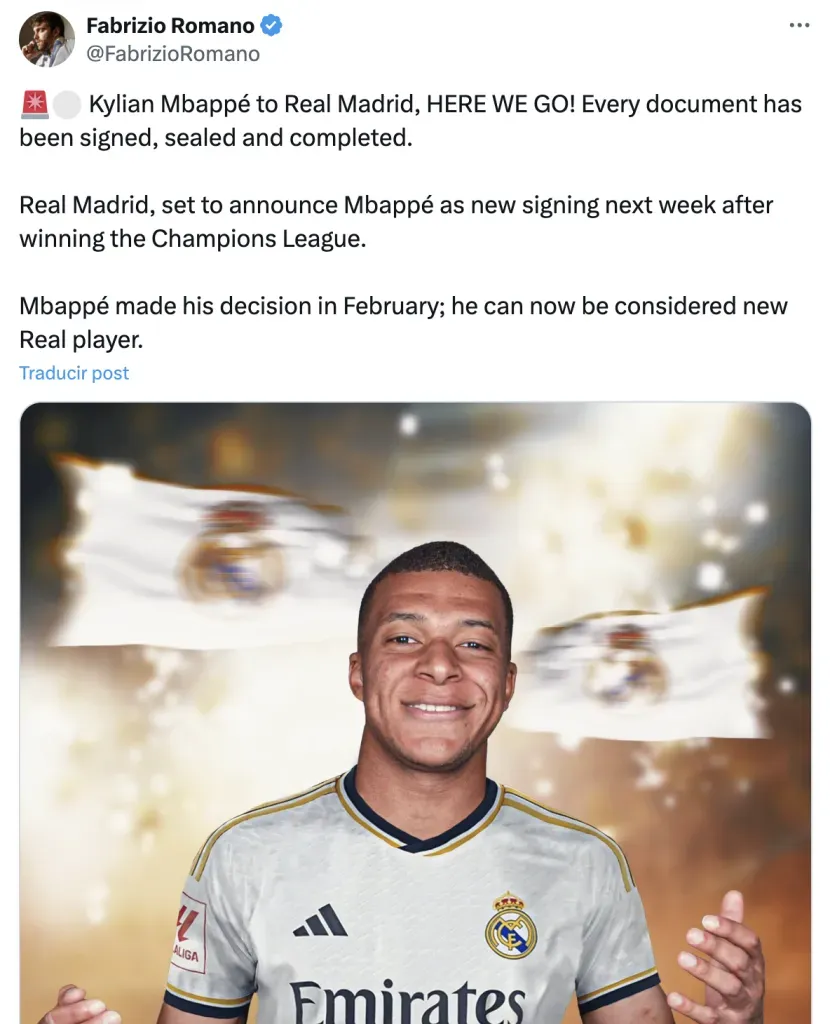Si bien el fichaje de Mbappé con el Real Madrid es inminente, sin duda millones de aficionados están a la espera del anuncio oficial, el cual será un bombazo en el balompié internacional.