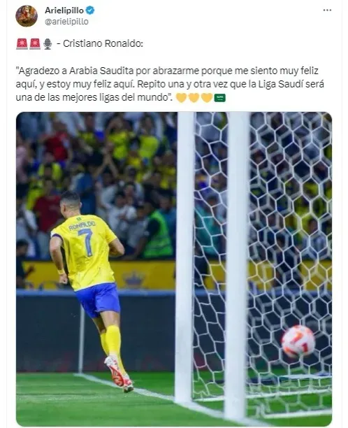 CR7 se convirtió ya en la figura de la Champions League árabe no había podido marcar en sus primeros dos juegos, eso sí, ahora se estrena y veremos hasta dónde puede llegar.