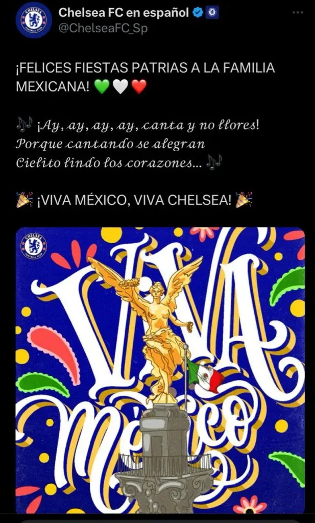 Tal fue el caso del Chelsea, club que evocó una de las canciones que más nos representan como mexicanos.