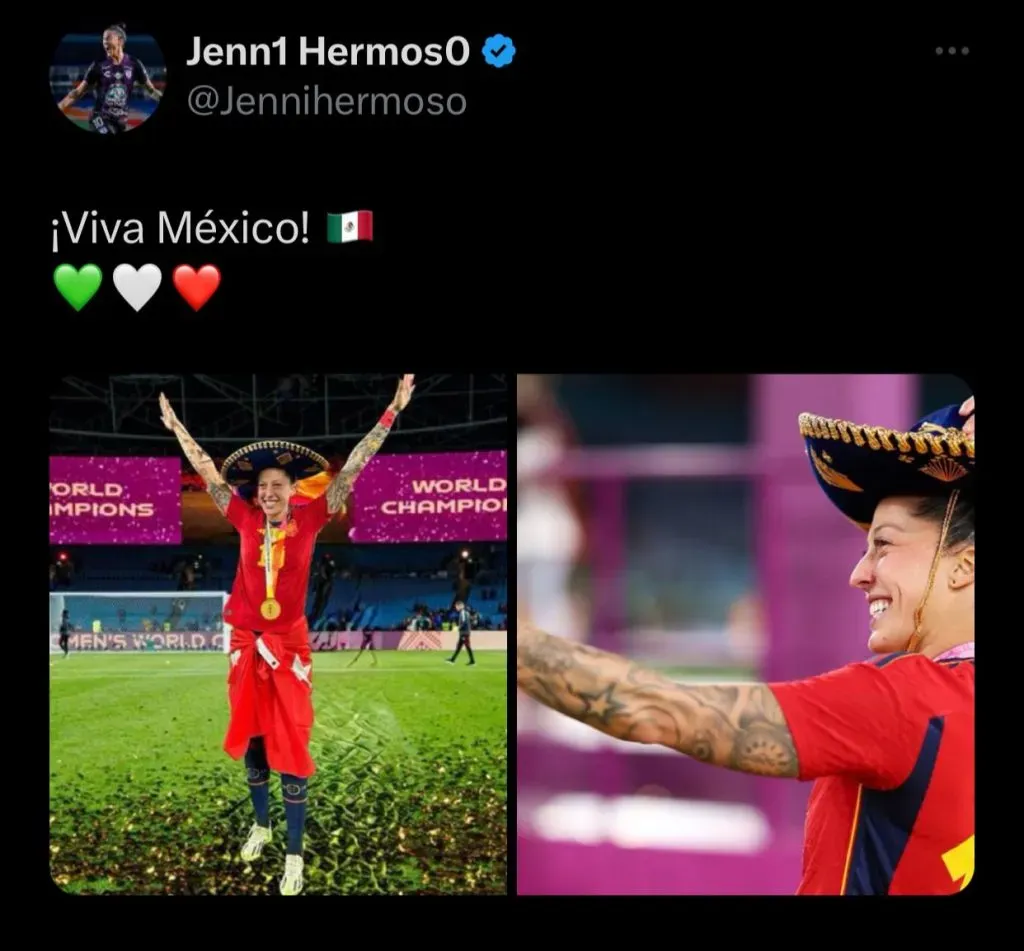Dicho mensaje de felicitación vino acompañada de fotografías de su celebración con la Selección de España, tras conseguir el título en la Copa del Mundo Femenino 2023.