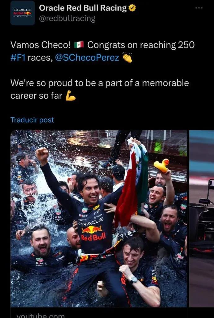 Mientras, la cuenta de la escudería de la Fórmula 1, Red Bull aprovechó el espacio y recordó algunos de los mejores momentos del piloto tapatío.