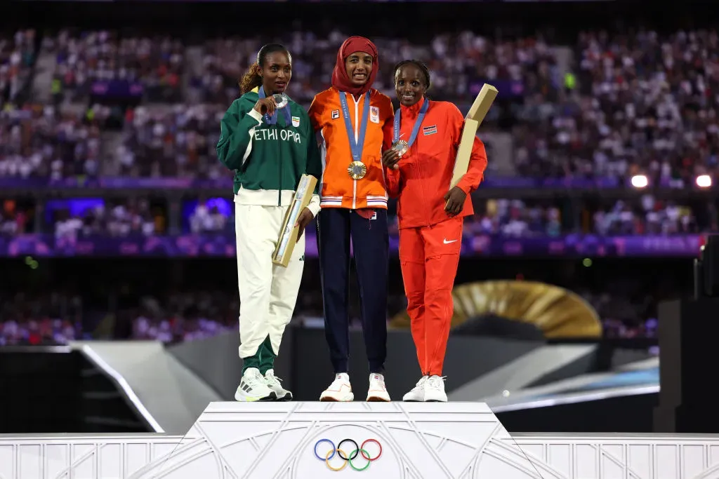 Una vez que los atletas se acomodaron en el campo de juego, las tres primeras de la Maratón Femenil pasaron al frente a recibir la última medalla de París 2024. Hellen Obiri recibió la medalla de bronce, Tigst Assefa la medalla de plata y Sifan Hassan se llevó el oro olímpico en lo que fue una gran carrera.
