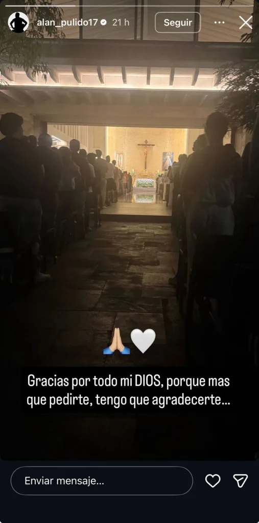 Alan Pulido compartió una fotografía dentro de una iglesia durante una misa. En la imagen se observan a más personas mientras se realiza el oficio. Y eso no fue todo, pues compartió un breve mensaje que dejó pensando a muchos.