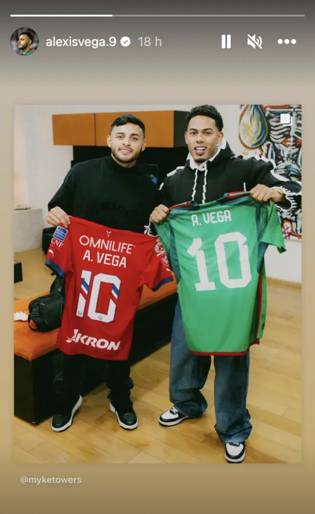 Fue el mismo cantante puertorriqueño quien compartió la postal del encuentro que tuvo con el futbolista rojiblanco, quien le regaló un par de jerseys: uno de la Selección Mexicana y otro de Chivas.
