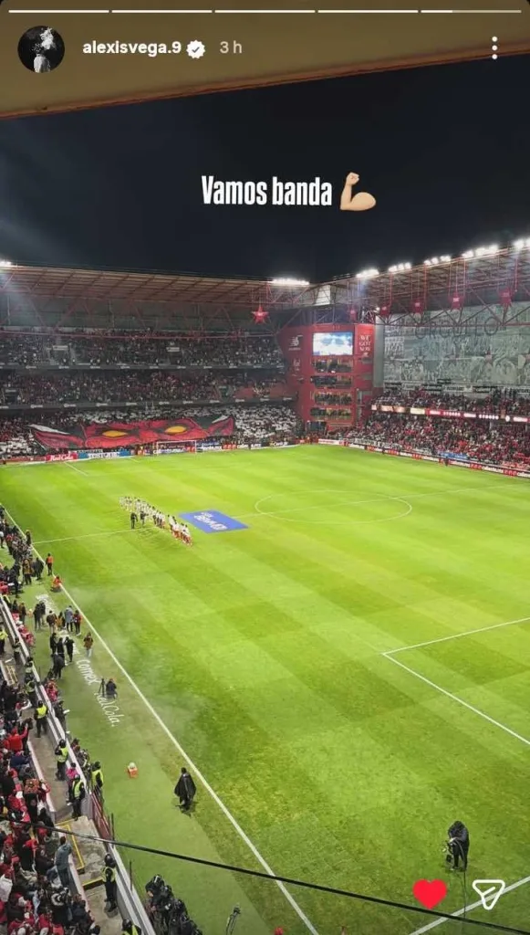 A través de sus redes sociales, Alexis Vega mostró que estaba presente en el Nemesio Diez y le envió un mensaje a sus compañeros. “Vamos banda”, posteó el futbolista que se ha convertido en un referente para el Toluca.