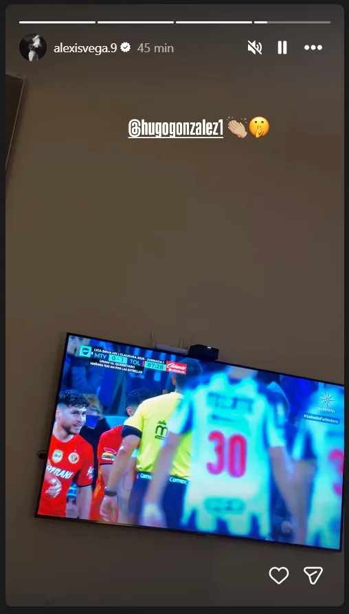 Debajo de estas líneas te dejamos una captura de pantalla del video que subió Alexis Vega en sus stories, en donde se puede ver cómo celebró el momento en el que su compañero Hugo González, detuvo un tiro penal de Sergio Canales.