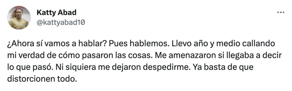 “¿Ahora sí vamos a hablar? Pues hablemos. Llevo año y medio callando mi verdad de cómo pasaron las cosas. Me amenazaron si llegaba a decir lo que pasó. Ni siquiera me dejaron despedirme. Ya basta de que distorcionen todo”