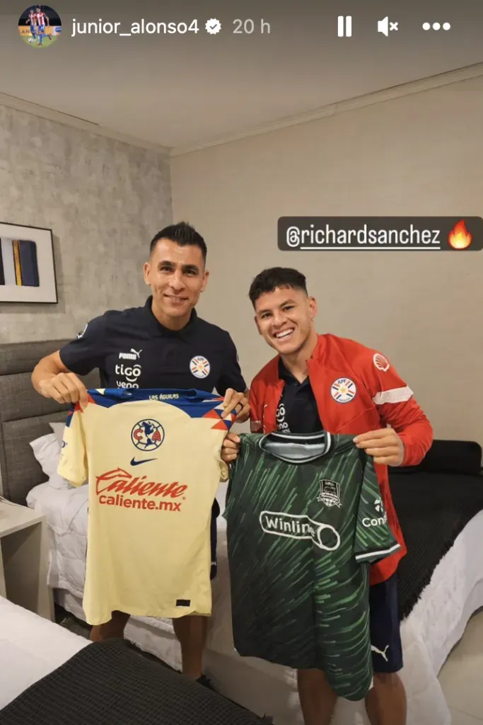 Junior intercambió playeras con su compañero de Selección Paraguaya, Richard Sánchez, por lo que posó con el jersey del cuadro azulcrema.