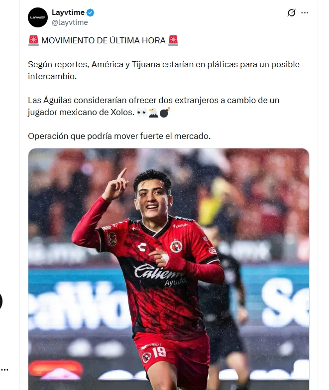Con información de Layvtime se dio a conocer que tanto las Águilas del América como los Xolos de Tijuana estarían en plenas negociaciones para que Gilberto Mora sea su FICHAJE BOMBA para el Clausura 2026. Y dicha llegada se daría gracias a un intercambio de jugadores.