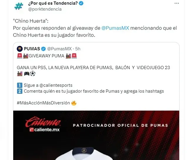 En la cuenta oficial del equipo de la Universidad Nacional Autónoma de México (UNAM) se compartió una promoción para los fans.