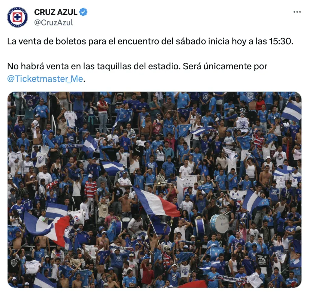 Es importante mencionar que el equipo celeste comunicó que no habrá venta en las taquillas del Estadio Ciudad de los Deportes, antes conocido como Estadio Azul.