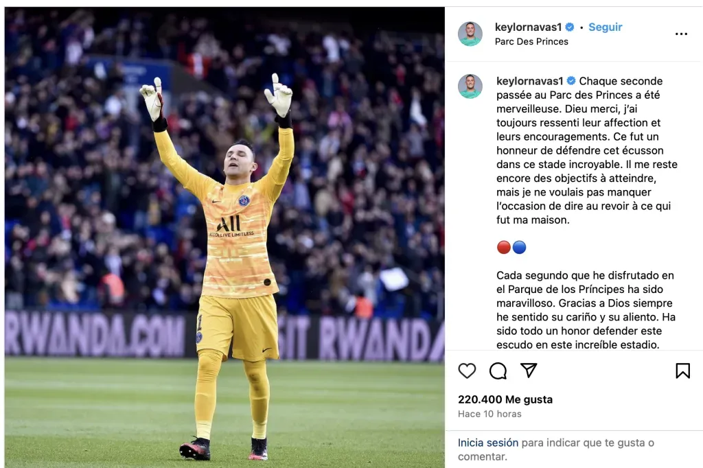 El experimentado portero dejó en un mensaje en redes sociales, en donde confirmó su salida del equipo francés, uniéndose a Kylian Mbappé, quien también recientemente anunció su salida del PSG y todo indica que su futuro estará en el Real Madrid.