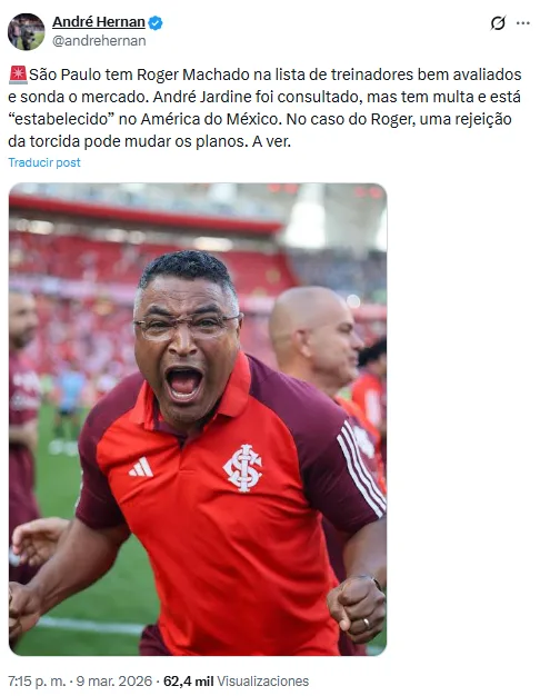 La fuente señala que el motivo por el que Sao Paulo no avanzó con la opción de Jardine fue su cláusula de rescisión, que oscilaría los 3 millones de dólares. Por esto, se han inclinado a la opción de Roger Machado.