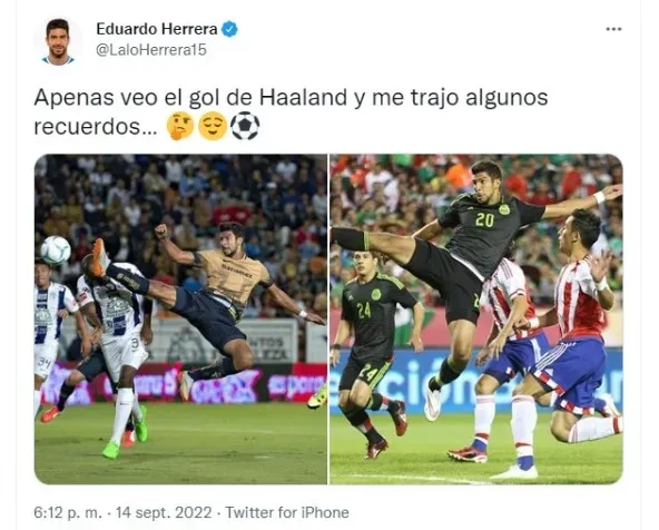 Herrera reveló que ver el gol de Haaland con Manchester City ante Borussia Dortmund le “trajo algunos recuerdos”, por medio de su cuenta de Twitter.