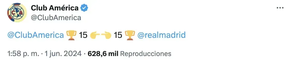 Y es que esta vez el conjunto azulcrema se voló la barda cuando se comparó con el combinado merengue. Pues decidieron usar sus redes sociales para compartir una similitud que tienen entre los americanistas y los galácticos, pues en menos de dos semanas, ambos sumaron 15 títulos en su historia.