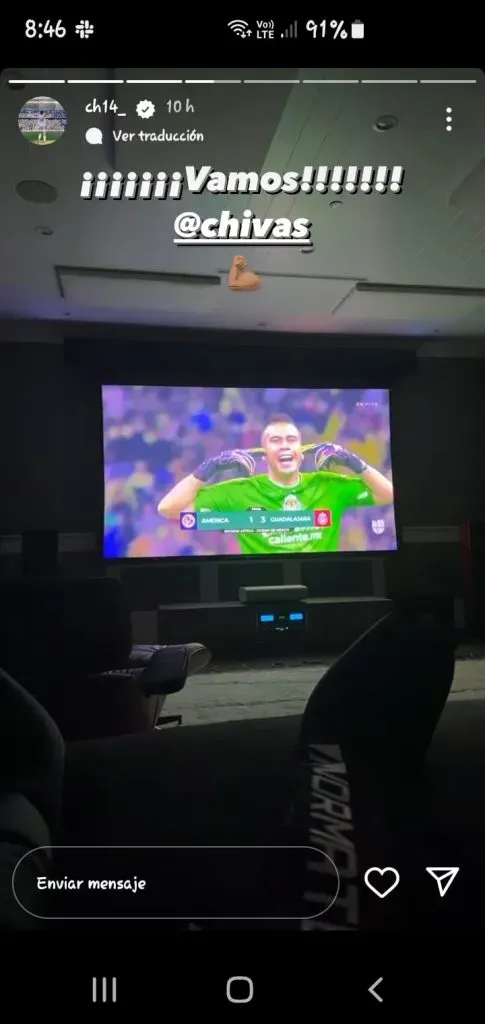 Se dio tiempo para ver a sus chivitas y así lo dejó ver por medio de sus redes sociales, donde con un mensaje en sus historias de Instagram de “¡¡¡ Vamos Chivas!!!” dejó ver que les tiene un gran cariño.