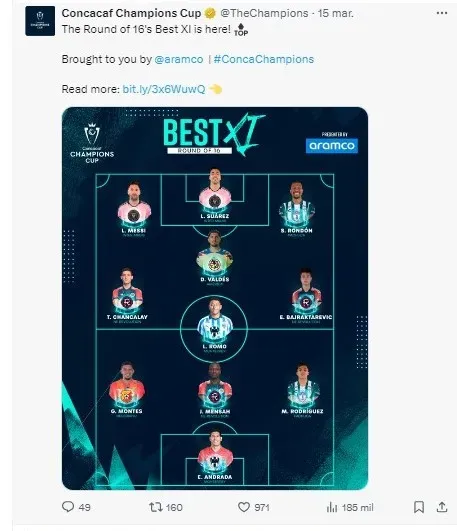 Fue por medio de las redes sociales de la Concachampions, donde se dio a conocer este once ideal. En donde además de Valdés figuran otras figuras de la Liga MX como Salomón Rondón de Pachuca junto a Rodríguez.