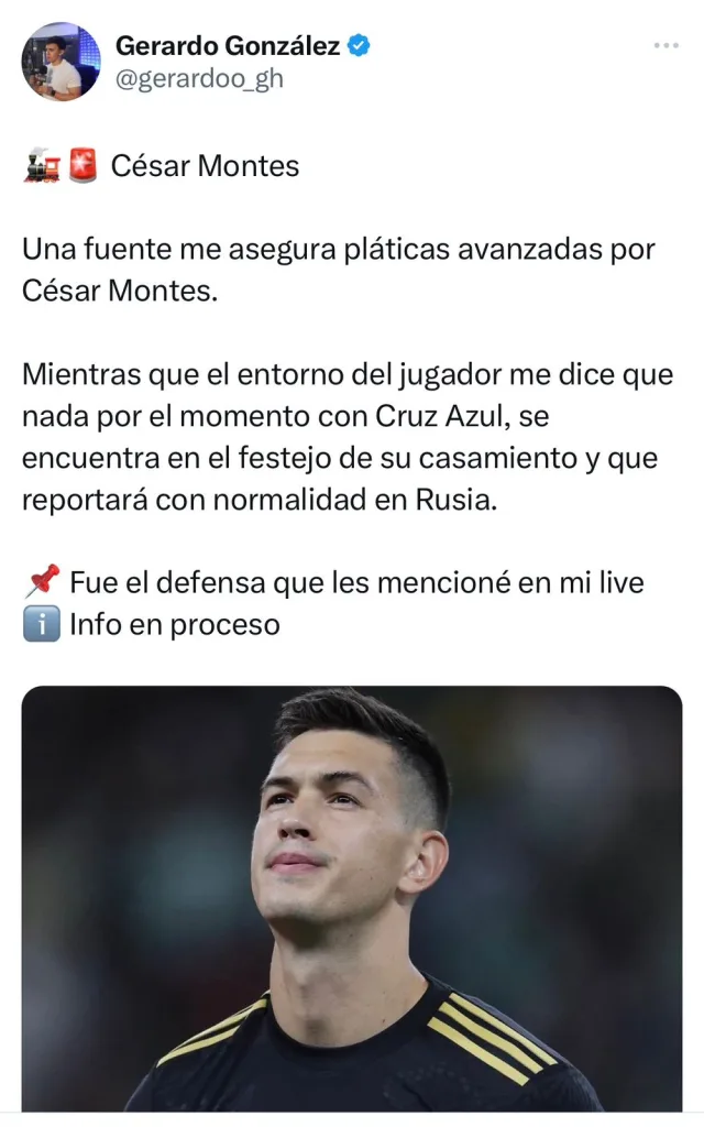 Por su parte, Gerardo González, de Vamos Azul, agregó que una fuente aseguró que hay pláticas avanzadas. No obstante, el entorno de César Montes le reveló que hasta el momento no hay nada con Cruz Azul.