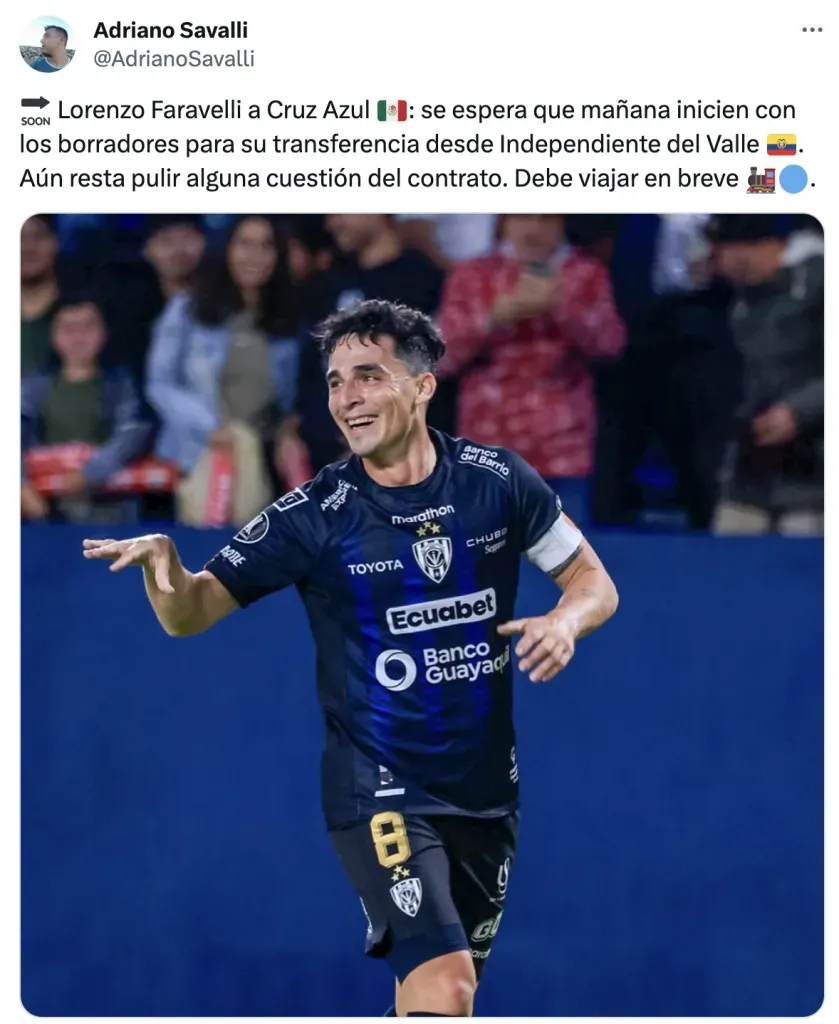 Se prevé que en los próximos días Lorenzo Faravelli arribe a la Ciudad de México, para someterse a los exámenes médicos correspondientes y posteriormente, plasmar su firma en el contrato que lo vincule oficialmente con el cuadro capitalino.