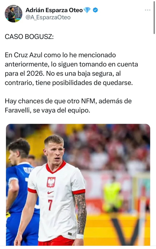 No obstante, tendrán que conocer las intenciones del atacante para definir si se queda o no en el equipo. Hay que recordar que Mateusz Bogusz ya habría manifestado su deseo de salir ante la falta de actividad. No obstante, Cruz Azul aún lo considera.