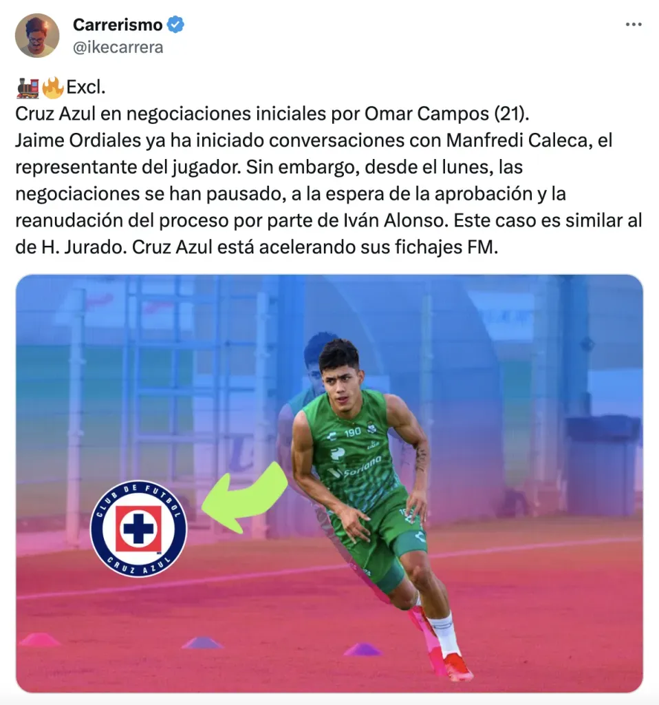 De acuerdo con la información de Ike Carrera, la directiva celeste ya inició negociaciones con el entorno del jugador, mismas que se pausaron esta misma semana, pues solo esperan la aprobación de Iván Alonso, el nuevo director deportivo.