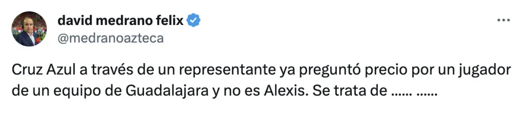 De acuerdo a la información de David Medrano, periodista de Azteca Deportes, la Máquina ya preguntó por un jugador que milita en Guadalajara, aunque se desconoce si en Chivas o Atlas.